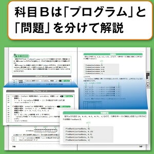 科目Bで重要な「アルゴリズムとプログラミング」分野は、「プログラム」と「問題」の両方を理解することが必要です。本書は、それらを分けて解説することで理解しやすくしています。