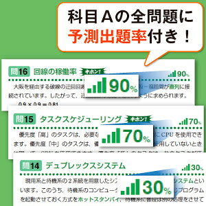 紙面に収録する科目Aの全問題には、試験の出題傾向から独自に分析した「予測出題率」を掲載しています。出題されやすい問題がひと目でわかるので、効率的に学習を行うことができます。