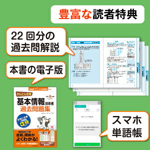 通勤・通学に便利な本書全文の電子版やスマホ単語帳、さらに科目A試験の過去問22回分(※旧 午前試験の過去問)をダウンロード提供しています。