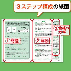 各解説では、解答に関する解説だけでなく合格するためのカギとなる情報を別枠「合格のカギ」に掲載。「問題」+「解説」+「カギ」の3ステップ学習で、効率良く合格力が身に付きます。