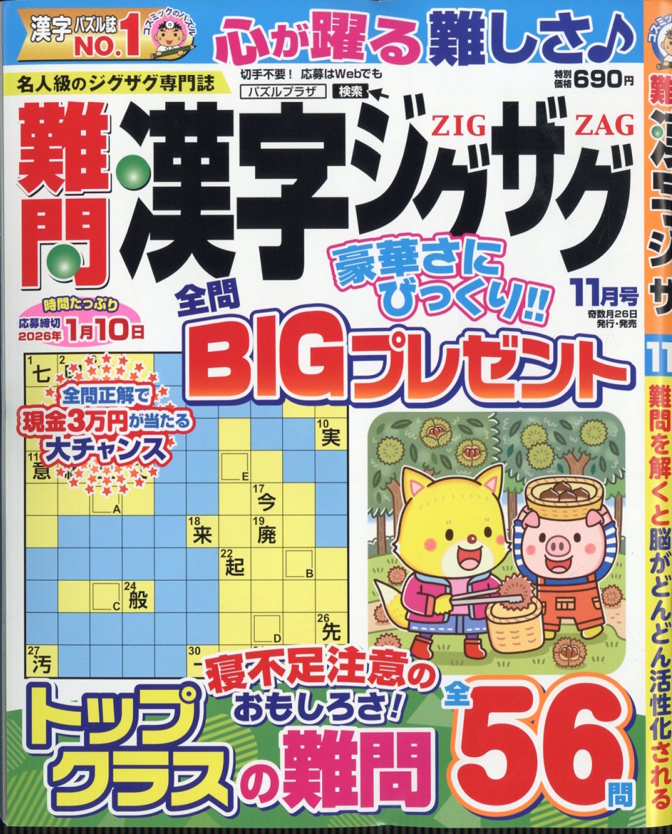 ![難問漢字ジグザグ2025年11月号[雑誌]](https://tshop.r10s.jp/book/cabinet/1159/4910068971159_1_2.jpg)