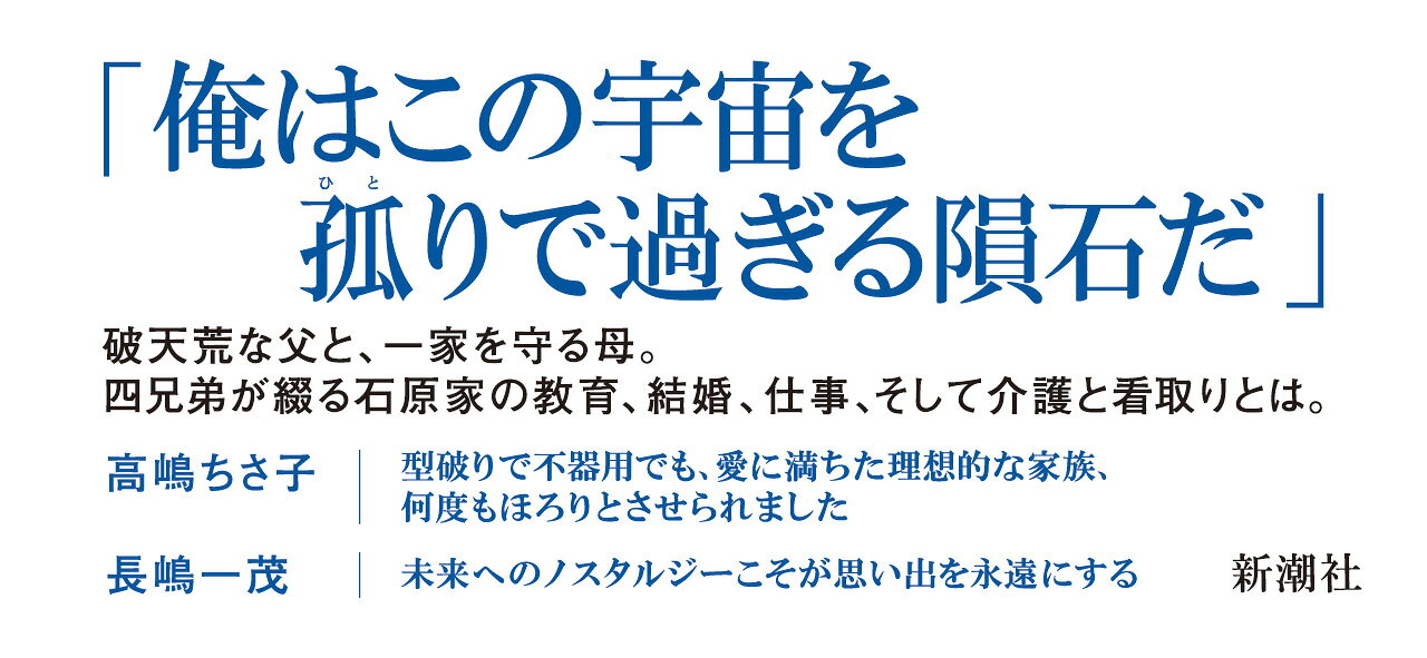 父は慎太郎、叔父は裕次郎。華麗なる「昭和の家族」の知られざる日々。「俺はこの宇宙を孤りで過ぎる隕石だ」--作家・政治家として一世を風靡した父と、彼を支え家庭を切り盛りした母・典子。そして家族同然だった裕次郎。強烈な家風で知られる「石原家」の日常は涙と笑いに満ちていた。お正月から大晦日まで、幼少期の出来事から介護、看取り、相続までを兄弟それぞれの視点から振り返る追憶エッセイ。