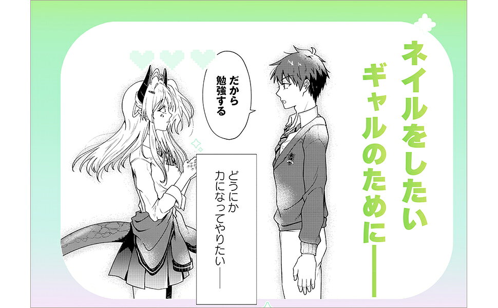 ドラゴンの血を引く亜人ギャルである五島サヨリに、モデラーの吾妻は『ネイル』をしてほしいとお願いをされてしまう。