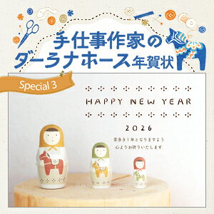 スウェーデンの伝統工芸品であるダーラナホースは、幸せを運ぶ馬として古くから愛されてきました。手仕事作家として活躍する、MARTTAさん、chakiさん、annasさんの御三方が本誌のために制作したダーラナホース作品を年賀状に仕立てました。