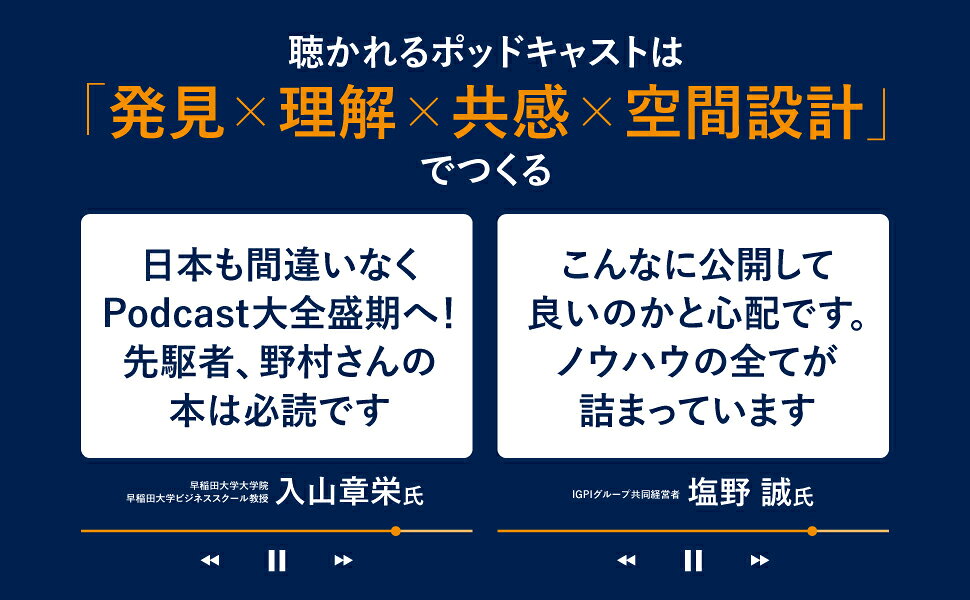 Podcastは、いま最も手軽で効果的な情報発信ツールとして注目されています。スマホさえあれば、誰でもすぐに番組を始められる。そして一度リスナーの心をつかめば、長く聴き続けてもらえるメディアでもあります。しかし現実には、「再生回数が伸びない」「リスナーが定着しない」という壁に多くの人がぶつかります。本書では、そんな課題にこたえるべく、「発見+理解+共感+空間設計」という“番組の価値を高める方程式”をもとに、企画づくりから収録、編集、配信、宣伝、そしてマネタイズまで、Podcastを成功させるためのノウハウを、実践的かつ網羅的に解説します。「自分でも番組を持ってみたい」「ブランドや事業のPRとして始めたい」と思ったとき、まず最初に手に取っていただきたい、決定版の入門書です。