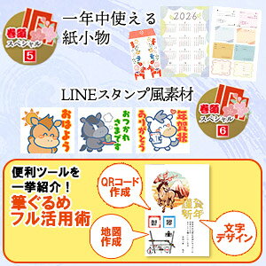使いやすくて大人気の年賀状ソフト「筆ぐるめ32 特別版」を収録!わかりやすい操作解説に加えて動画での解説も見れるので、機械が苦手な方でもかんたんに年賀状を作ることができます。
