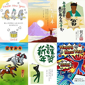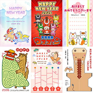 家族や友人など親しい人に送ることができる年賀状です。個性豊かなかわいいイラストが盛りだくさん!