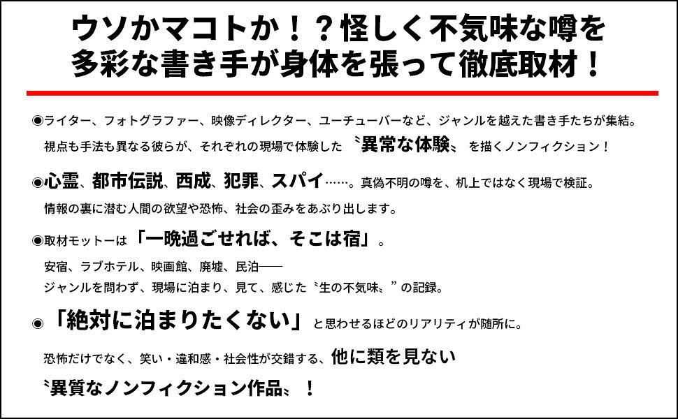 数々の書き手たちが、身体を張って徹底取材に挑むーー。