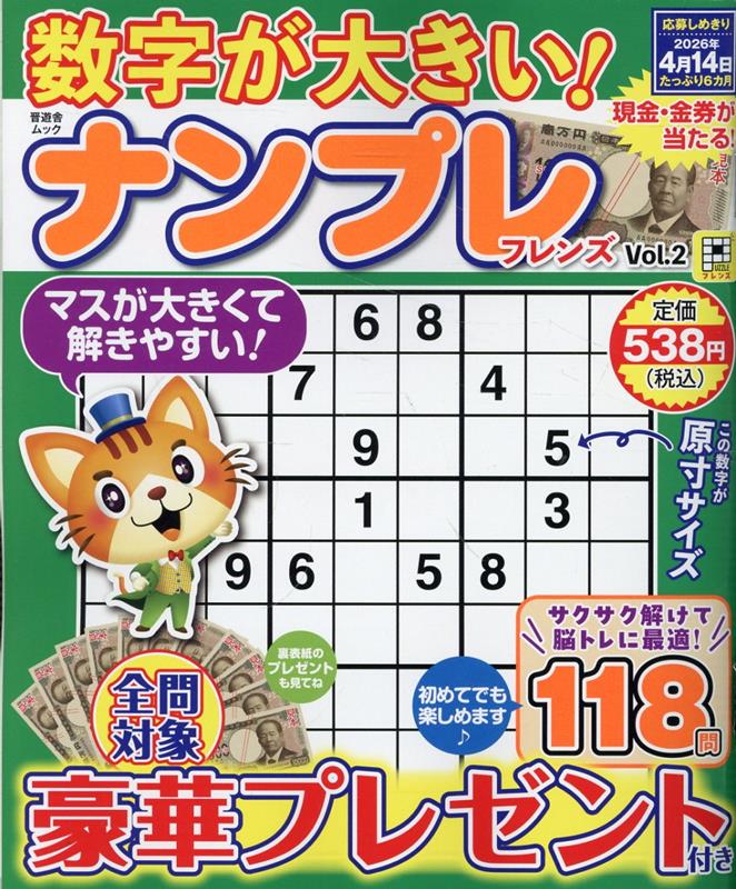 数字が大きい!ナンプレフレンズ(Vol.2) (晋遊舎ムック)