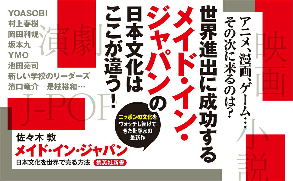 戦後、日本の文化は海外での成功を夢見てきた。音楽や映画、文学、演劇の世界で、世界的な知名度を得ている作家や作品はあるものの、日本カルチャー全体が「輸出商品」として盛り上がっているとは言い難い。