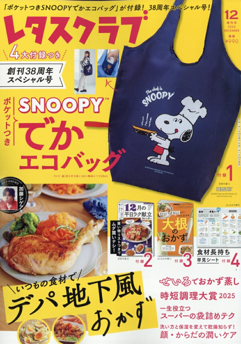 失礼で申し訳ありませんが、数十年ぶりにレタスクラブ買いました。新婚当時は愛読書でしたがいつしか購入する事も中々なかったのですが、今回はSNOOPYのエコバックが欲しくて購入しましたが、相変わらずレシピがたくさん紹介されていたので早速作りました!