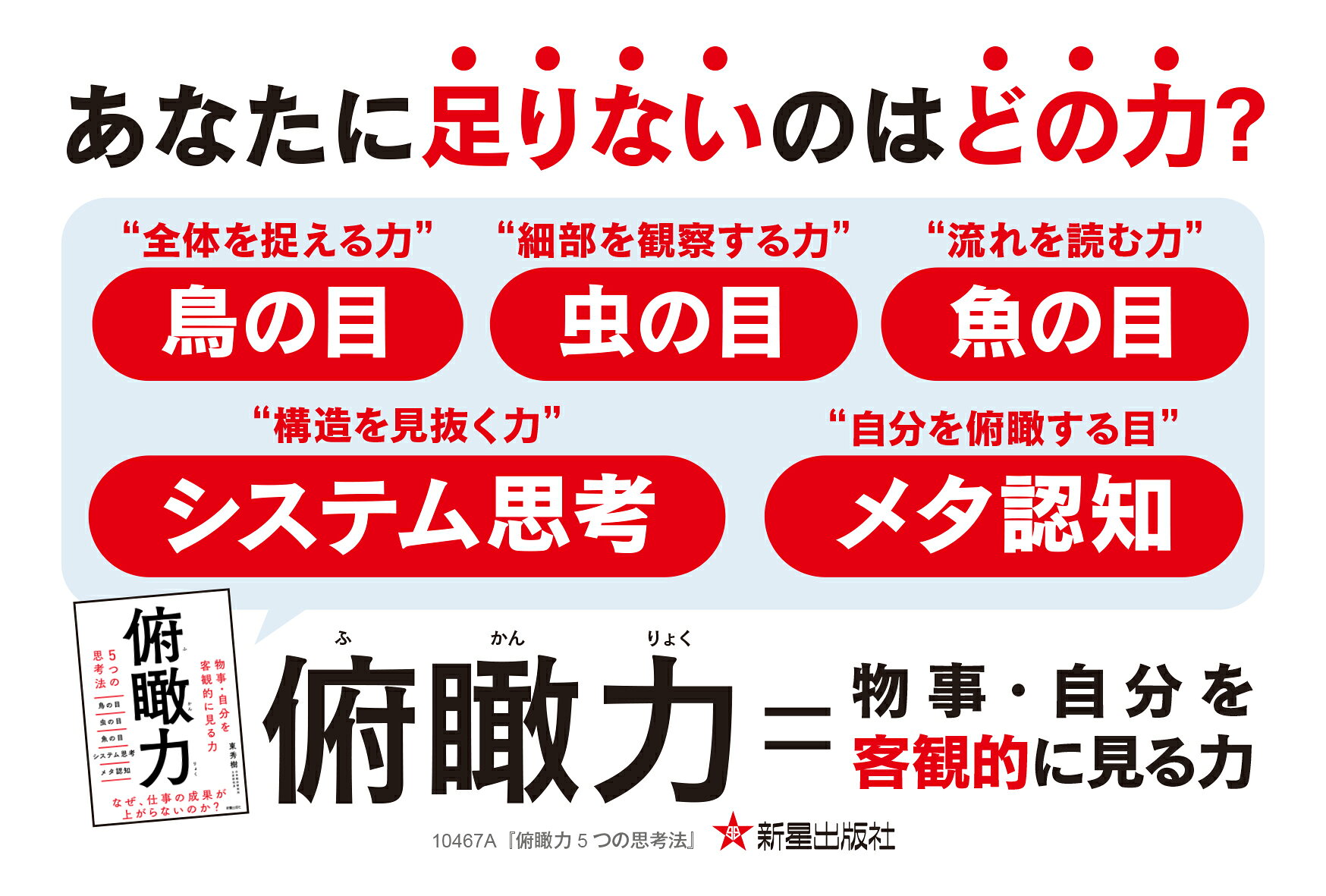 できるプロに共通する一生役立つ必須スキル!自分の価値が上がる全体・細部・流れを読む力。日々降りかかるタスク、膨大な情報、組織間の調整…。目の前の仕事に追われている方に必要なのが「俯瞰力」です。