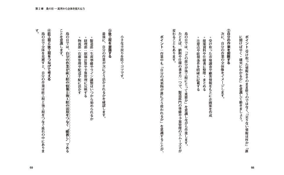これらは、長年コンサルタントの現場で培った著者が大切にしているもので、できるプロフェッショナルに共通する一生役立つスキル。それが俯瞰力です。