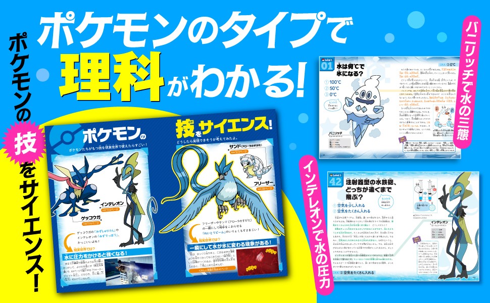 ポケモンのタイプで理科がわかる!!メッソンで天気。バニリッチで水の三態。インテレオンで水の圧力。クイズで楽しい!だから覚える!理系脳に進化する!楽しい理科クイズ50連発!東京科学大学教授監修の本格派。ポケモンバトルで知識を深掘り。巻末にポケモン進化図鑑つき。