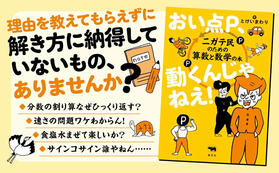 ニガテ総選挙No.1の速さ問題、脳が拒絶するつるかめ算や利益算、常になんとなく不安な文章問題……。疑問や不満がつもりつもって、わたしたちは算数につまずき、数学にたおれる。