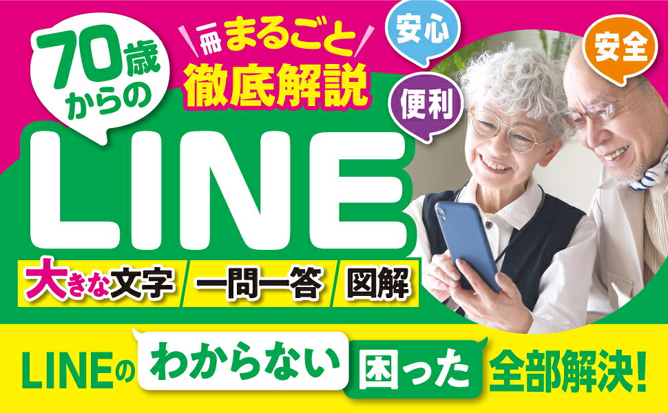 シニアの生活や生きがいを一変させるLINEに焦点をしぼり、ITのスペシャリストがわかりやすくやさしく解説!大きな文字、一問一答、図解でわかりやすい!基本からお得機能まで使いこなし全ガイド。