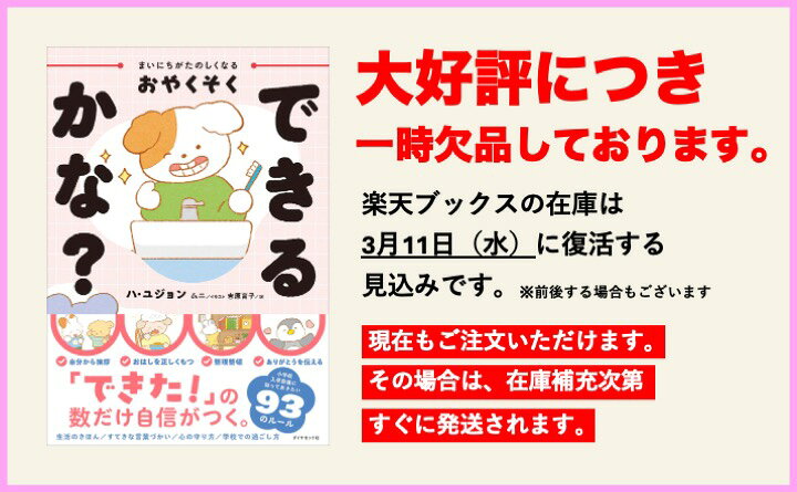 ![まいにちがたのしくなるおやくそくできるかな?[ハ・ユジョン]](https://tshop.r10s.jp/book/cabinet/3577/9784478123577_1_2.jpg)