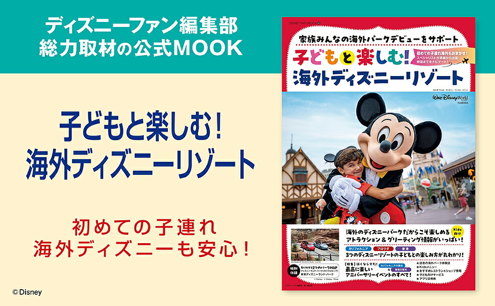 大好きなディズニーを海外でも楽しみたい! 子どもを連れて海外ディズニーリゾートに行きたい! そんな家族みんなでの海外パークデビューを応援する、海外ディズニーリゾート公式ガイドブックです。カリフォルニア、フロリダ、香港を徹底取材で特集!