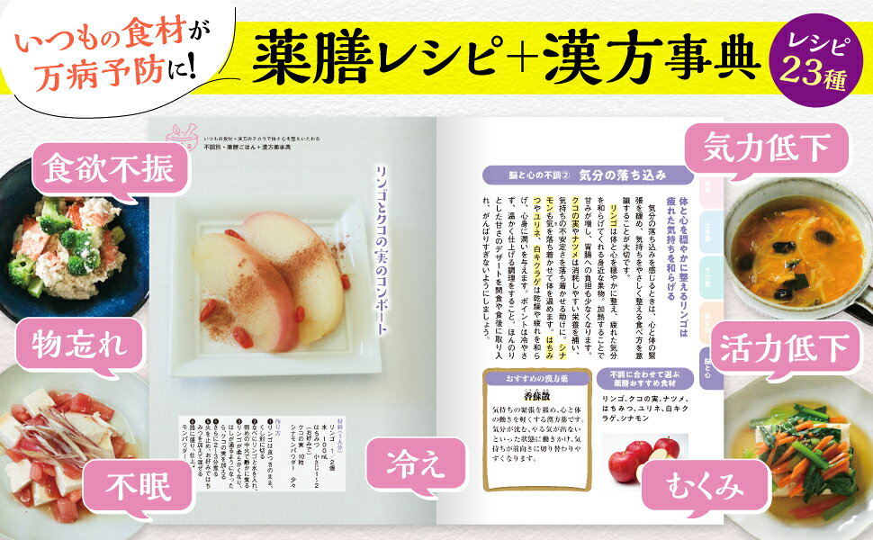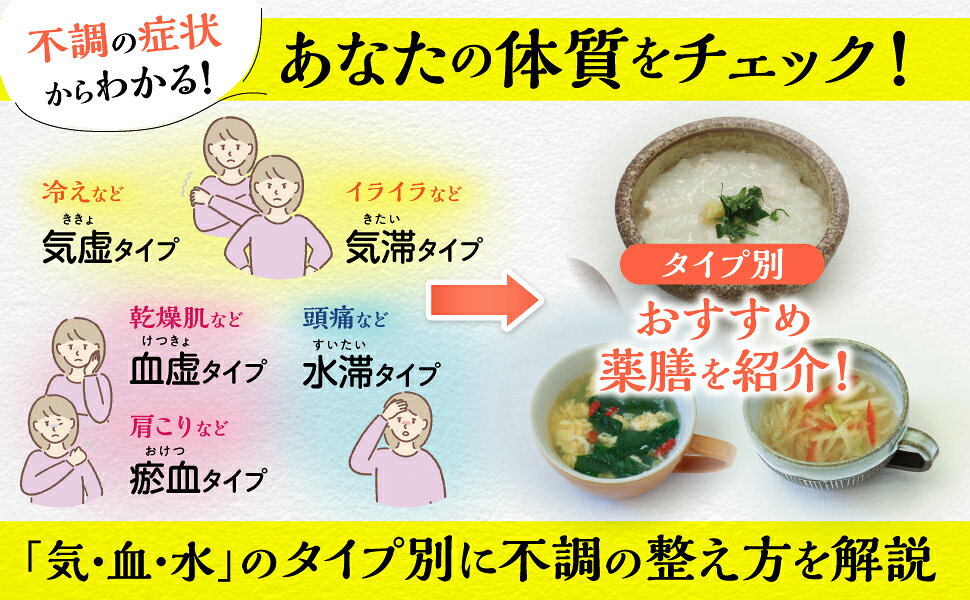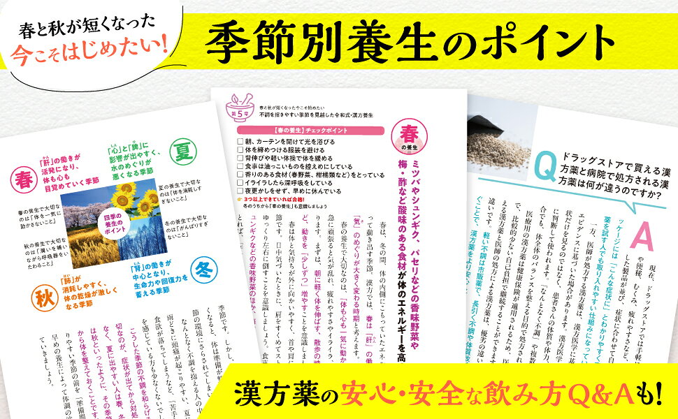 さらに、眠りが浅い、やる気が出ない、朝がつらい、むくみやすいなど50代から増える「あるある不調」や、食が細くやせてきた、物忘れが増えた、落ち込みが激しいなど高齢者に多い体と心の不調まで、身近な食材で作れる薬膳レシピ+相性のよい漢方薬で総合的にアプローチ。季節や1日のリズムに合わせた生活習慣のコツも紹介します。