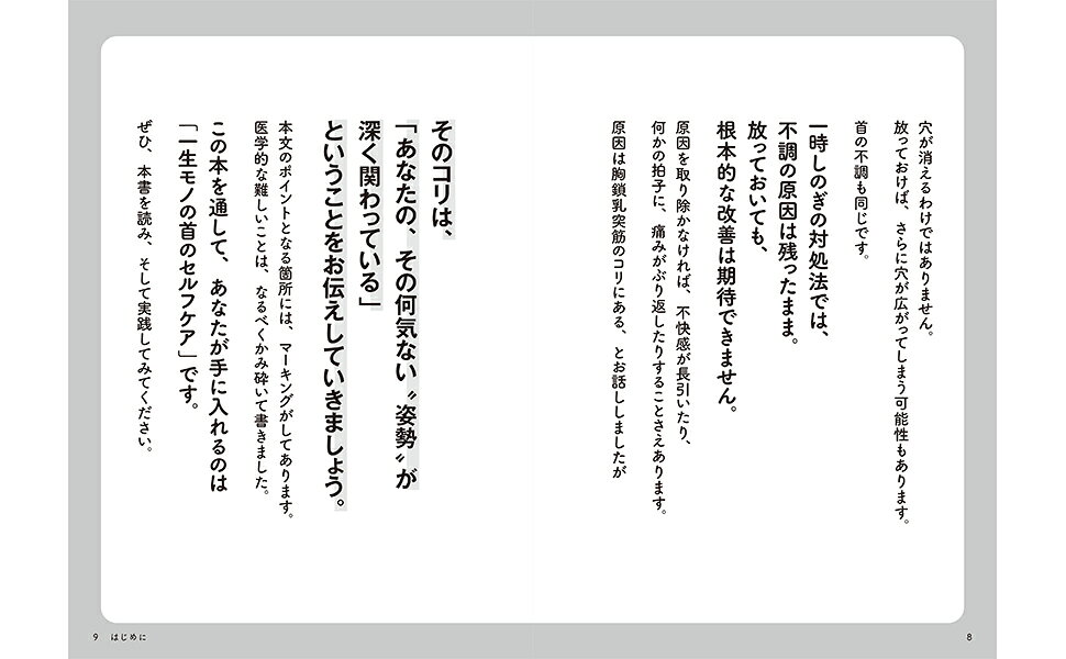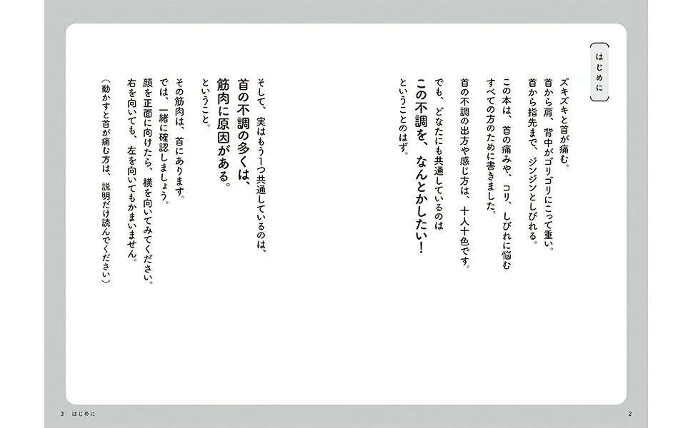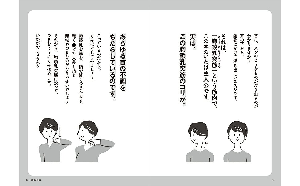 1章 その首の痛み、本当の理由は?(十人十色の“首が痛い”/首の二大疾患「頸椎症」と「頸椎ヘルニア」 ほか)/2章 首の痛み、コリ、しびれ…不調の元凶は筋肉にあり(併発する首の痛み、コリ、しびれ/「痛み」の4つのタイプ ほか)/3章 首の痛み、コリ、しびれを取るセルフケア(セルフケア2週間で首が回り、1か月で痛みが解消!/首の健康は筋肉のバランスが整ってこそ ほか)/4章 首のしくみ、病気、手術(どこまでが「首」で、どこからが「肩」?/中高年に多い頸椎症 ほか)/5章 首が強くなる生活(「怖いから」と首を動かさないのは逆効果の場合も/首に悪いだけでなく老けて見える「下向き」 ほか)