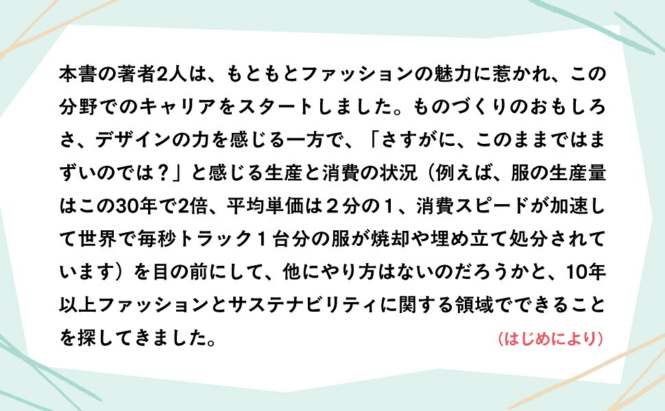 著者は「多様で、健康的なファッション産業をつくる」をミッションに、サステナブルファッションに関する教育やコンサルティングを行う一般社団法人の理事2人。