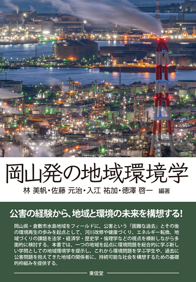 岡山県・倉敷市水島地域をフィールドに、公害という「困難な過去」とその後の環境再生の歩みを起点として、河川改修や健康づくり、エネルギー転換、地域づくりの課題を法学・経済学・歴史学・倫理学などの視点を横断しながら多面的に検討する。本書では、一つの地域を起点に環境問題を総合的に学ぶ新しい学問としての地域環境学を提示し、これから環境問題を学ぶ学生や、過去に公害問題を抱えてきた地域の関係者に、持続可能な社会を構想するための基礎的枠組みを提供する。