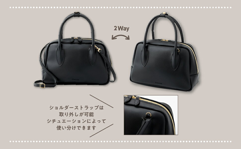◎ストラップは取り外し可能な2way仕様。ショルダーは長さ調節も可能です。