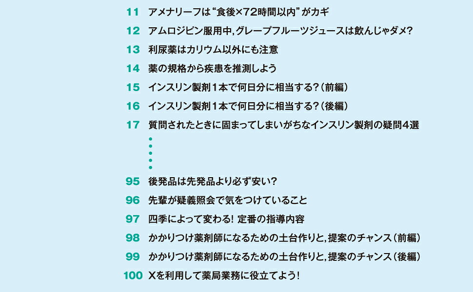 「大学では習わないけれど、臨床では当たり前のように共有されていることが想像以上に多い。もし、新人ならではの疑問を一つひとつ解決できる本があったなら」--そんな著者の思いから生まれた1冊。若手薬剤師が現場で感じている疑問や悩んでいる問題をSNSで拾い上げ、“まずはこう考えよう・行動しよう”をわかりやすく解説します。日常でよく遭遇する100のケースに沿って、知識を実践に結び付けるコツが無理なく身につきます。