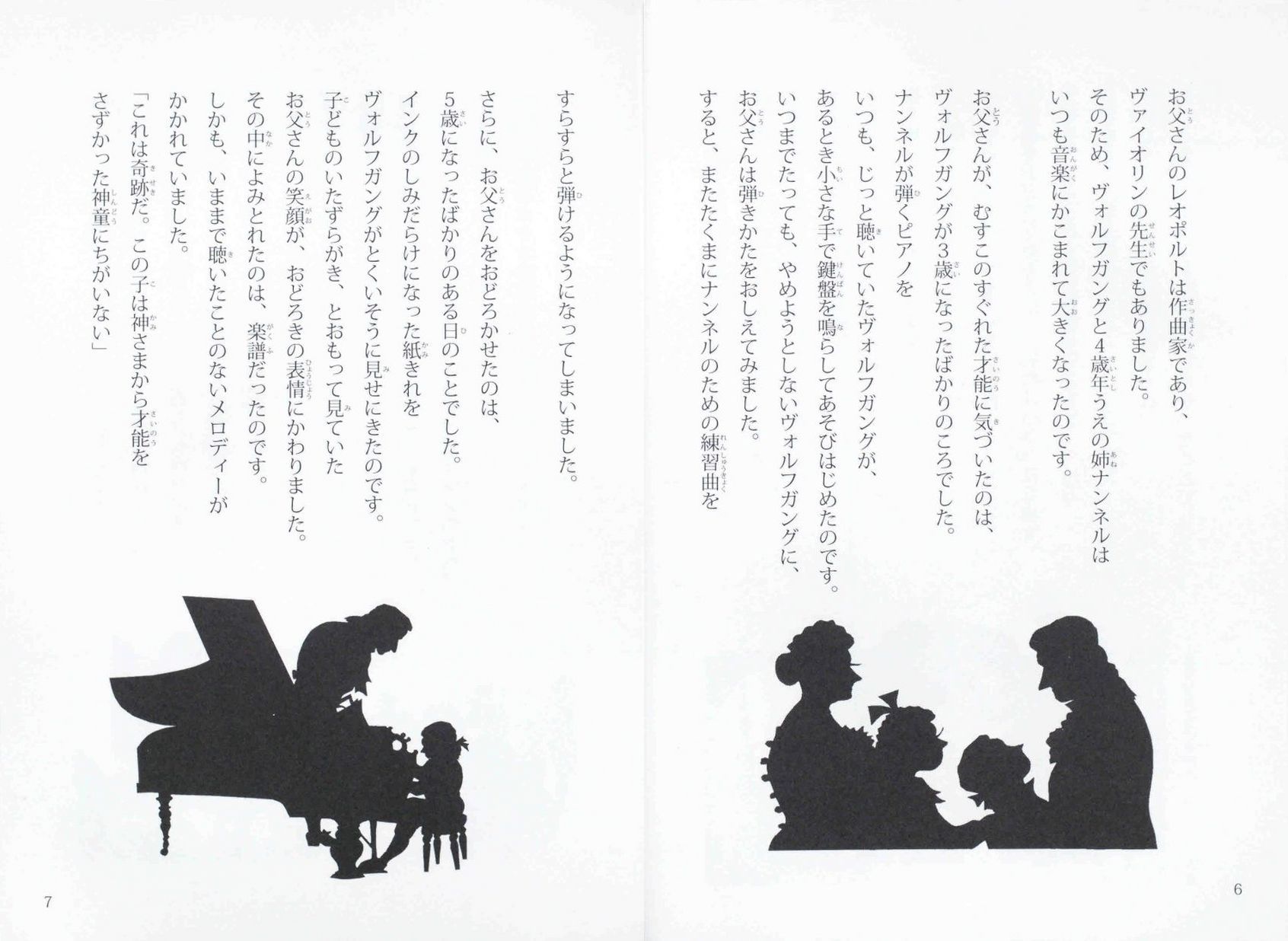 易しいナレーション入りのCDでモーツアルトの名曲の数々を聴きながら、35年の生涯をお話と切り絵で辿ります。