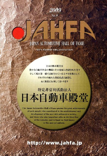 理念/会長揮毫/2009年度(第9回)日本自動車殿堂表彰式館長祝辞/2009日本自動車殿堂者の選定にあたって/トロフィー・ロゴなどの制作意図/殿堂者:久保富夫氏紹介(空力特性と基本重視の高性能車を開発)/殿堂者:古浜庄一氏紹介(水素自動車エンジン研究・開発の道を拓く)/殿堂者:齋藤孟氏紹介(自動車の環境・エネルギー研究の先導者)/殿堂者:内海倫氏紹介(戦後の交通警察発展の司令塔)/殿堂者:大橋孝至氏紹介(マツダRE車によるル・マン24時間レース制覇)〔ほか〕
