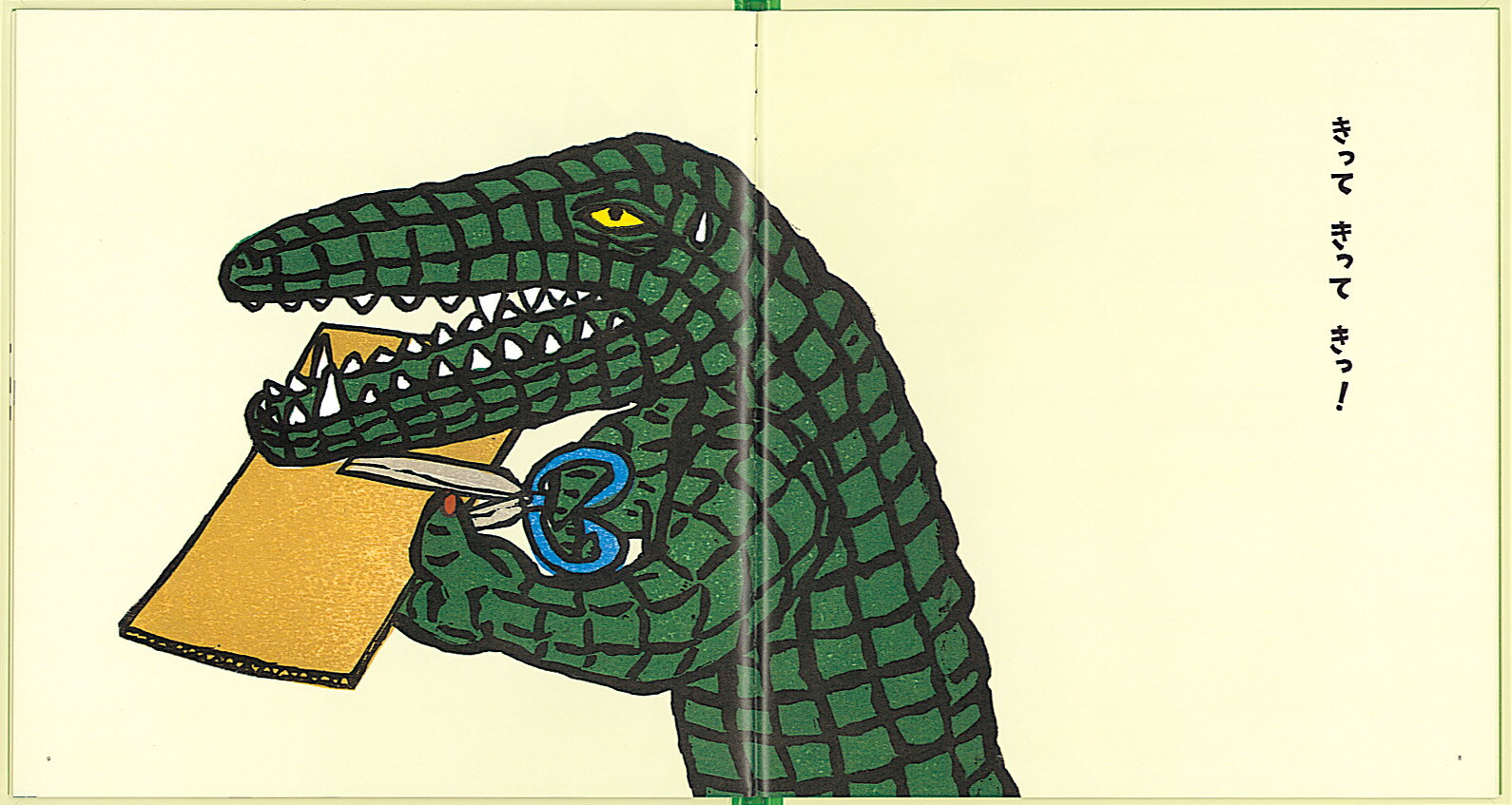 ある日、わにわにが部屋をのぞくと、そこは紙や糊やハサミが散乱した部屋でした。