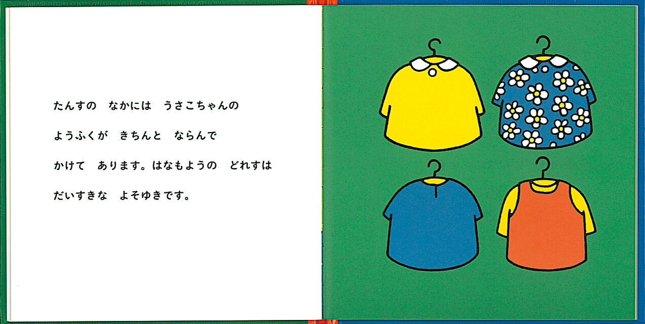 うさこちゃんのお気に入りの持ち物、それは読者の幼い子どもにとっても同じ。ひとつひとつ、やさしく簡潔な言葉で描かれるこの作品に強い共感を覚えることと思います。