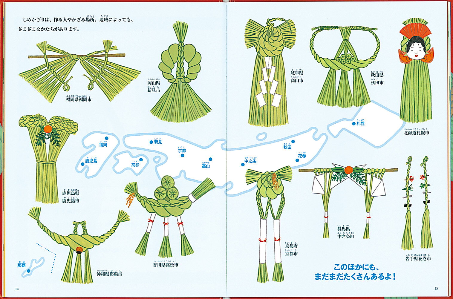 日本全国にはさまざまな形のしめかざりがあります。それぞれの形に込められた人々の想いとは?お正月に飾られる“しめかざり”の絵本。