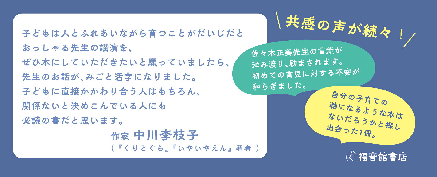 どなたかも冗長だという評価をしていらっしゃいましたが、確かに回りくどいところがかなりありますし、いわゆる育児指南本としては物足りないと思われる方もいるかも知れません。主題は一貫して「人との関わり合いの大切さ」です。